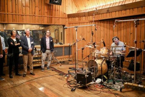 The event also gave attendees a chance to see the studios in action with recording sessions by Broadway actress Luba Mason (Chicago, Jekyll & Hyde) and the Pete Muller Band, and hear remarks by Stephen Webber, executive director of BerkleeNYC; Julie Menin, media and entertainment commissioner for the Mayor’s Office of Media and Entertainment; Matthew Kwatinetz, executive vice president, Asset Management Revenue, Economic Development Corporation (EDC); and Muller.