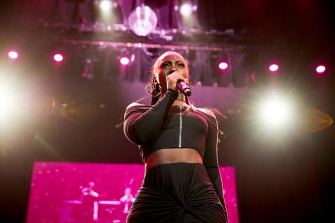 Student Jazmyn Vialet, who performs as Lola Vialet, takes the stage at Berklee Career Jam 2019.