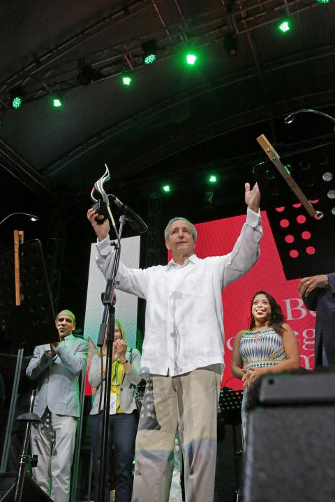 Larry Simpson, senior vice president for academic affairs/provost, presented the award to Alvarez on the festival’s main stage. “Luis has brought together, on these stages, great musicians from all over the world—players that might not otherwise have shared a spotlight,” Simpson said. “Together with Berklee, he has also spearheaded an enduring education program here in San Juan. Nearly 3,000 students have gone through the program, studying under Berklee faculty, and several have built impressive careers as professionals.”