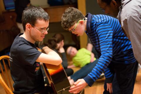 Perkins student Tim C. works with Berklee alumnus Noe Socha.