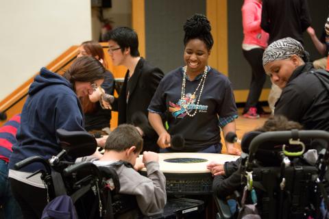 Kelsey Crawford, the Movement’s outgoing president—a week later, she would graduate with the class of 2015—explained that the goal of the Perkins workshop was to help the school establish a deeper commitment to assistive music programming.