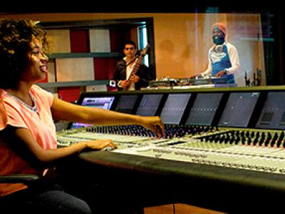 The production community is for students who want to use their writing, arranging, engineering, and production skills to excel in careers that combine art and technology. Those who pursue this career path are adept at using technology to expand the way entertainment and artistry are experienced. In this field, you will work collaboratively with performers and designers to produce a quality product, whether it is an album, digital product, stage production, or anything in between.