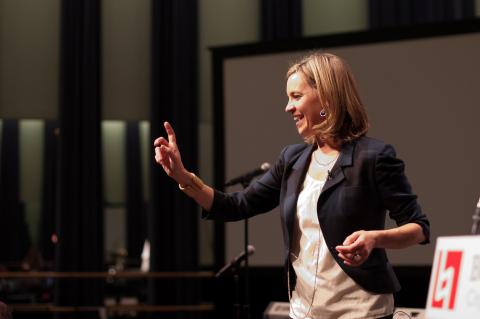Keynote speaker Jennifer McCrea, author and senior research fellow at the Hauser Institute for Civil Society at Harvard University, addresses the crowd on the opening day of the summit.