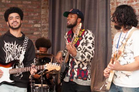 Music and Youth Development Alliance (MYDA) students from Berklee City Music Network site Renaissance Youth Center in the Bronx borough of New York City perform at the open-mic night and jam session.