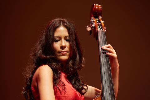 Student musical coordinator Esther Rojas switched between playing acoustic bass and electric bass and conducting throughout the concert.